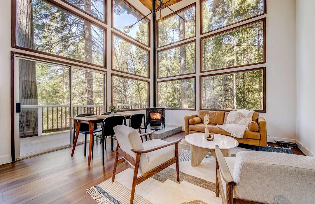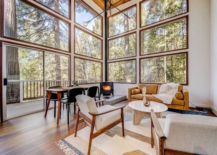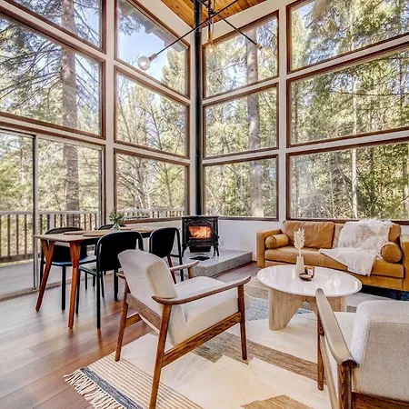 Situada 2.8 km de Scotts Flat Lake Recreational Area, Glass Cabin Under The Pines | Hot Tub • Seclusion Nevada City convida os hóspedes a relaxar num terraço.